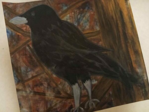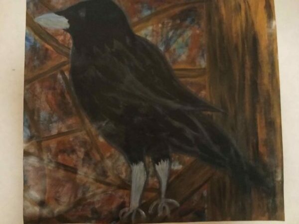 Ny Kjøp Bilde/malerier, Håndlaget i Norge., Siliam design., Sjø-samisk Abstrakt plakat-maleri; “Den kloke ravnen” kr 540