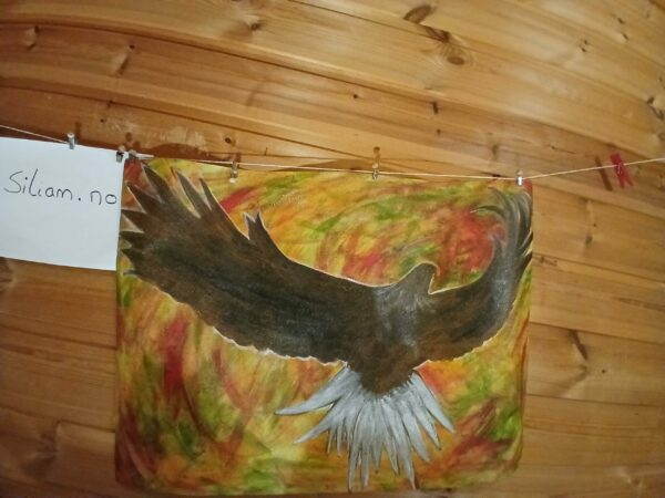 Ny Kjøp Bilde/malerier, Håndlaget i Norge., Siliam design., Sjø-samisk Abstakt plakat-maleri; “Havørn i rød solnedgang” kr 570