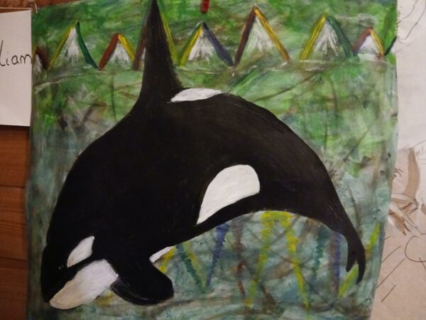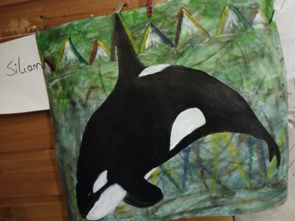 Ny Kjøp Bilde/malerier, Håndlaget i Norge., Siliam design., Sjø-samisk Abstrakt plakat-maleri; “Spekkhogger i Sapmi” kr 570
