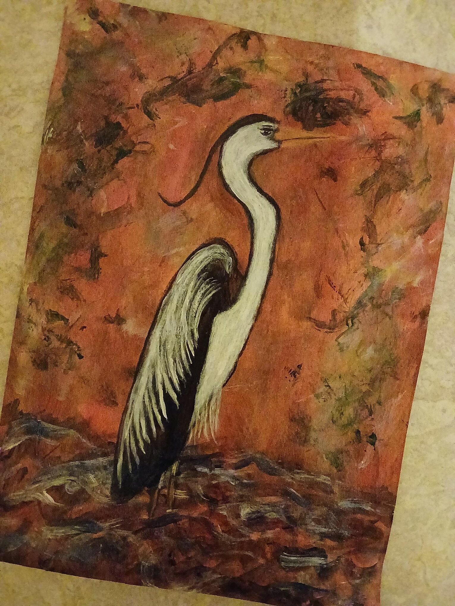 Ny Kjøp Bilde/malerier, Håndlaget i Norge., Siliam design., Sjø-samisk Plakat-maleri. Abstrakt.”Háigir”. Rødaktig bunnfarge. kr 260