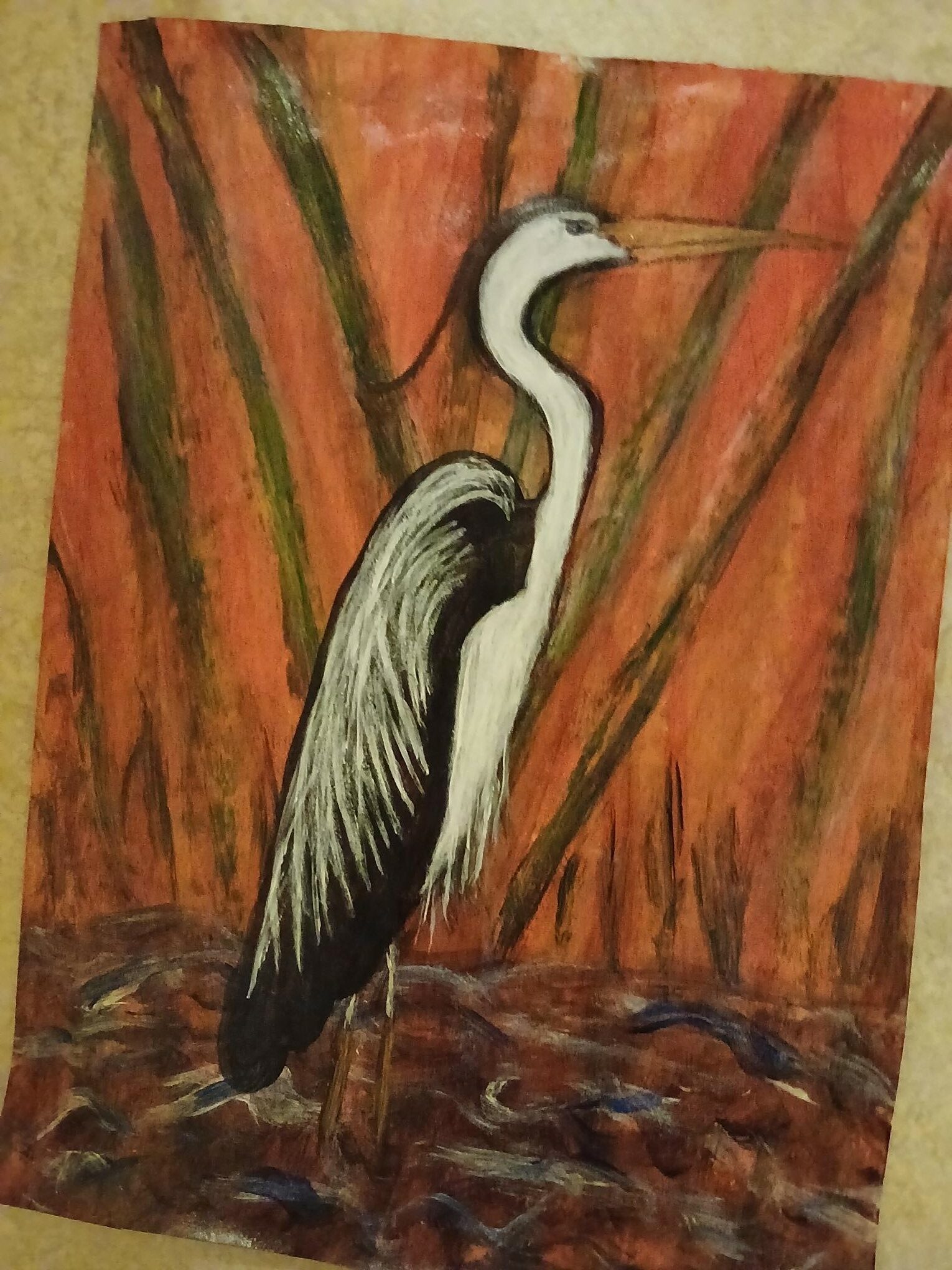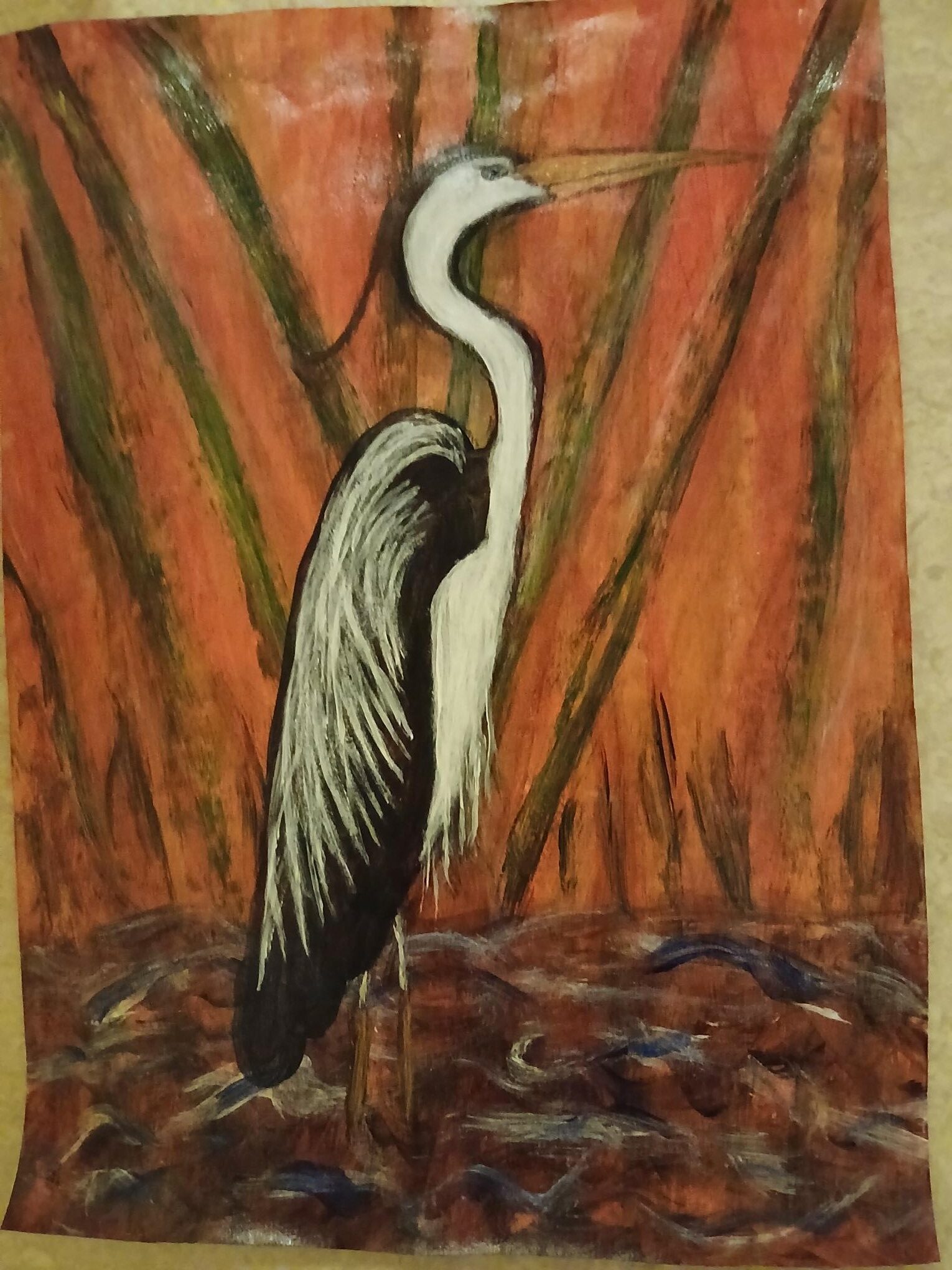 Ny Kjøp Bilde/malerier, Håndlaget i Norge., Siliam design., Sjø-samisk Plakat-maleri;”Háigir”. Abstrakt, siv-bakgrunn. kr 320