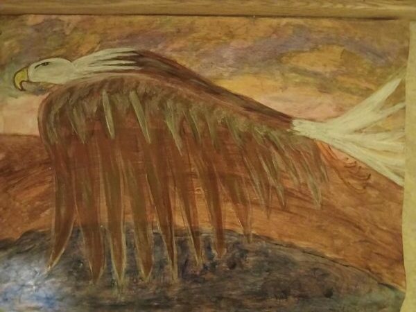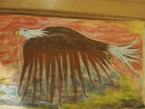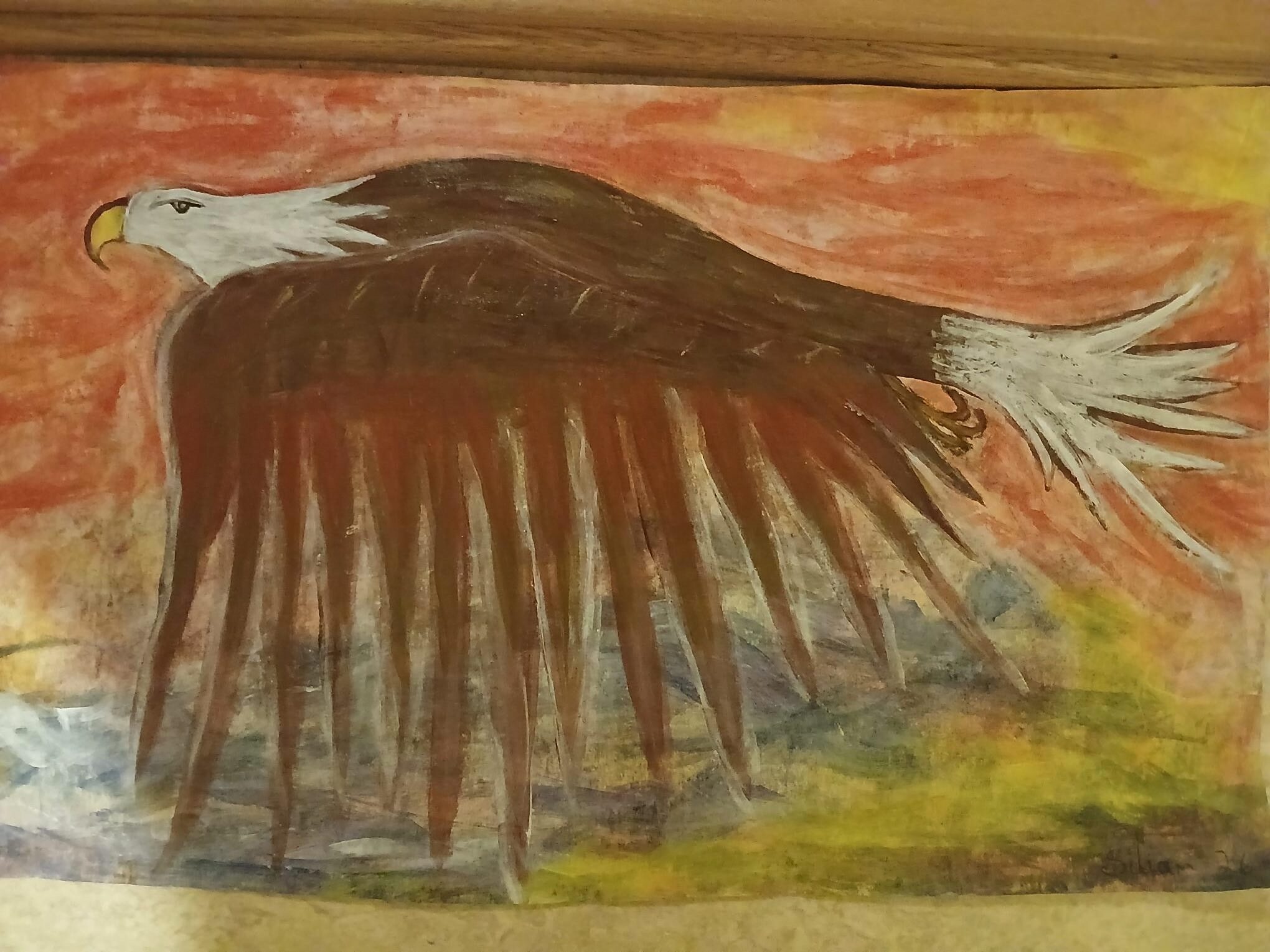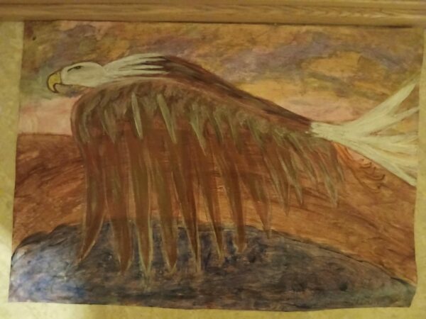 Ny Kjøp Bilde/malerier, Håndlaget i Norge., Siliam design., Sjø-samisk Plakat-maleri, abstrakt;”Havørn i himmelrød vingeslag”. kr 430