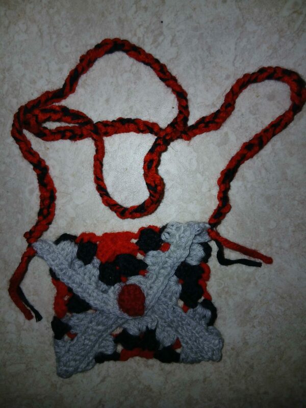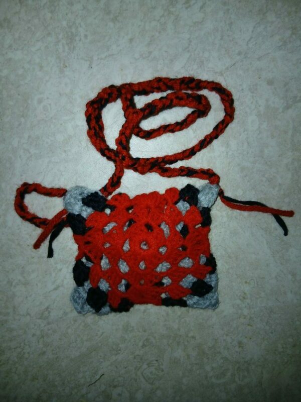 Ny Kjøp Boho, Håndlaget i Norge., Klær, Siliam design., Sjø-samisk, Veske Heklet “granny square”-veske, med rem og knapp til lukning. Flerfarget med rødt. kr 400