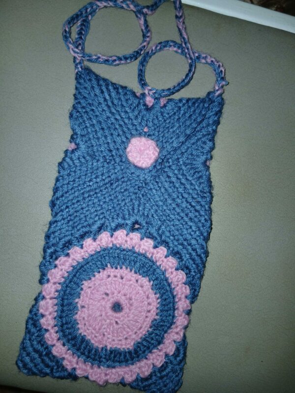 Farge : rosa, lysegrønn og blå Strls: S-M Sydd av behagelig mykt stoff: nervøs fløyel. Siliam design.
