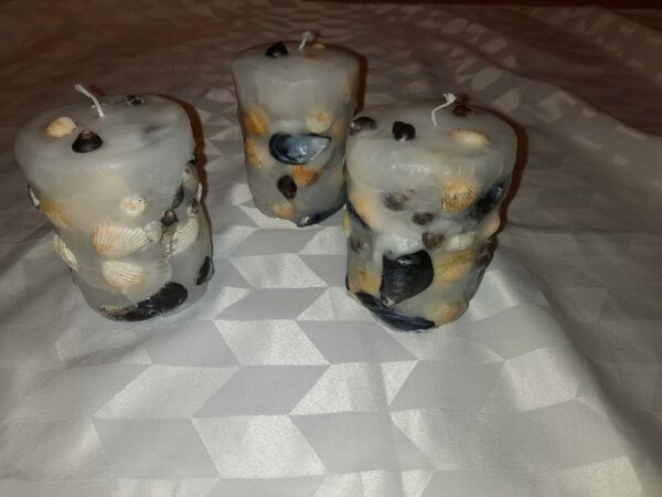 Kjøp Duftlys, Håndlaget i Norge., Modellbåter & gaver, Siliam design., Sjø-samisk Ekstra tykt bivokslys og lavendelsåpe i kamskjellskall. kr 120
